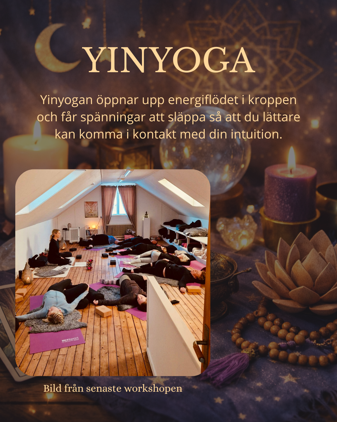 Yinyogan förbereder och gör dig mer mottaglig för energier genom intuitionen, som vi sedan använder oss av när vi utforskar tarotkorten.